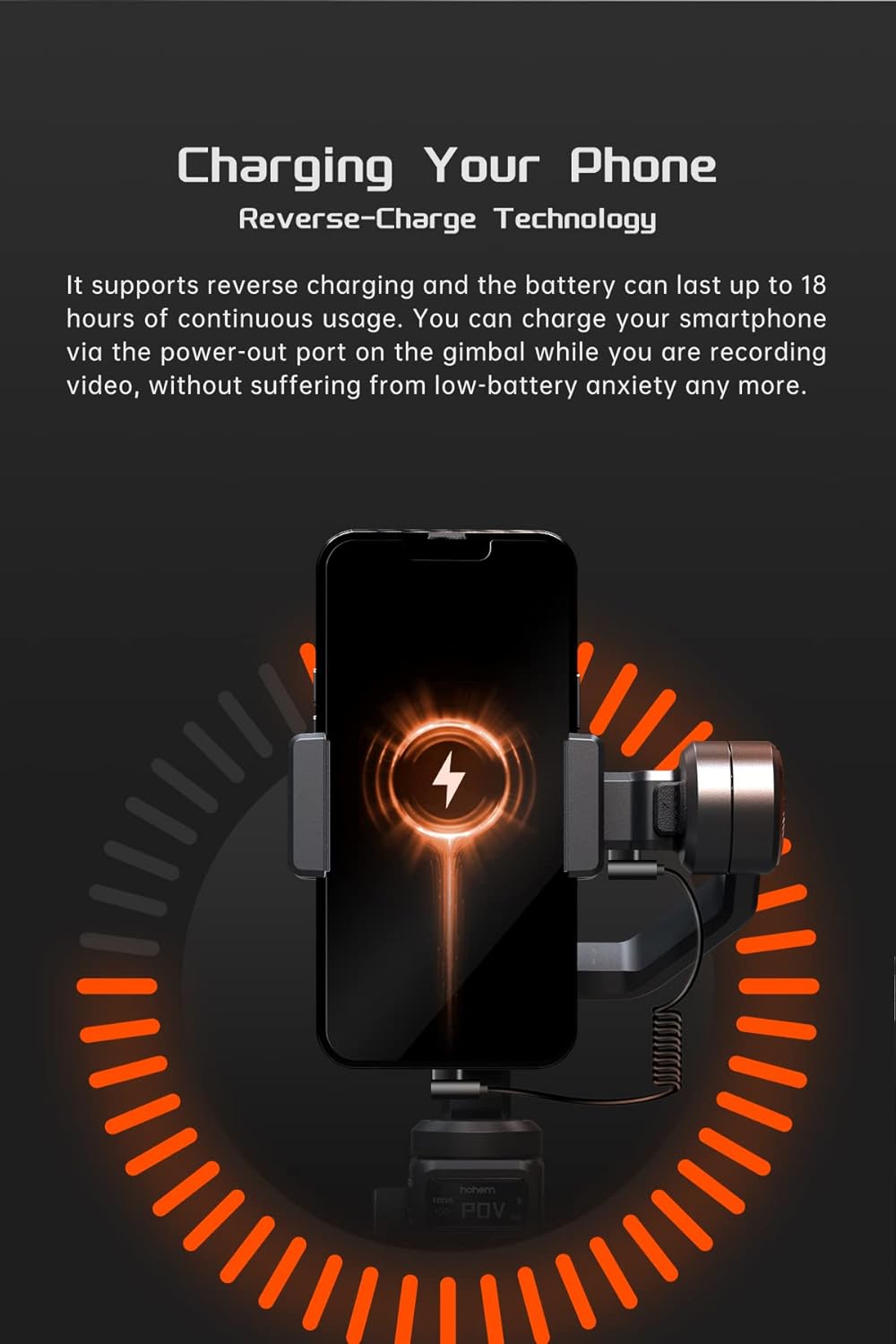 【تقنية الشحن العكسي】 يدعم الشحن العكسي، وتدوم البطارية حتى 18 ساعة من الاستخدام المتواصل. يمكنك شحن هاتفك الذكي عبر منفذ الطاقة الموجود على المثبت أثناء تسجيل الفيديو، دون القلق بشأن انخفاض مستوى البطارية.