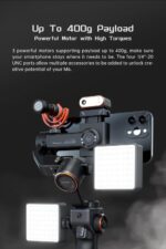 【حمولة تصل إلى 400 غرام】 ثلاثة محركات قوية تدعم حمولة تصل إلى 400 غرام، مما يضمن ثبات هاتفك الذكي في مكانه. تتيح منافذ 1/4 بوصة – 20 UNC الأربعة إضافة العديد من الملحقات لإطلاق العنان للإبداع مع iSteady M6.