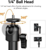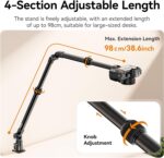 - 4-Section Adjustable Length: The stand is freely adjustable, with an extended length of up to 98cm, suitable for large-sized desks, and 1/4″ ball head offers flexible adjustments for shooting at different angles