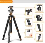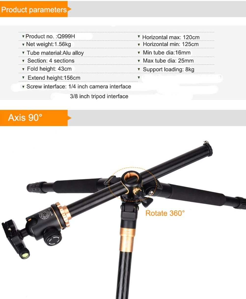 يمكن تعديل ارتفاع الأرجل المكونة من 4 أقسام من 41 سم إلى 156 سم، مع رأس كروي بانورامي قابل للدوران 180 درجة، ويبلغ طوله عند الطي 43 سم فقط، مما يجعله سهل الحمل للغاية مع حقيبة حمل الحامل الثلاثي القوائم؛