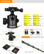 يدور الرأس الكروي المصنوع من سبائك الألومنيوم المصبوبة بزاوية 360 درجة، مما يساعد على توسيع نطاق حركة الكاميرا عند التصوير البانورامي. (يساعد ميزان الفقاعة على تحديد المستوى ودقة التكوين)