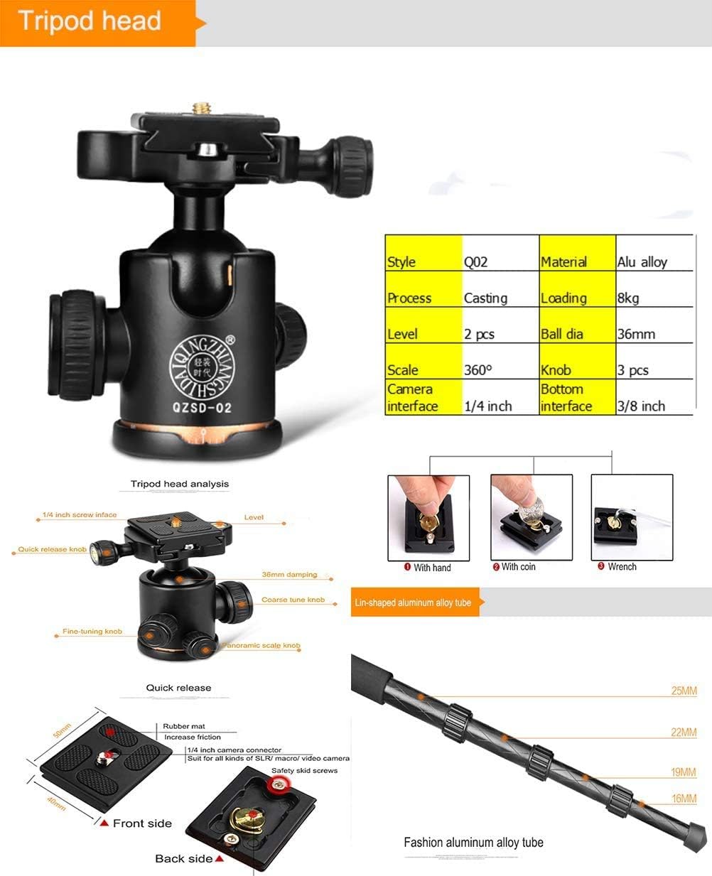 رأس كروي بانورامي Q-02 من الألومنيوم