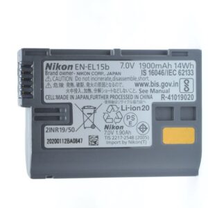 خلية بطارية عالية الجودة، مع دائرة آمنة وموثوقة لضمان جهد وتيار ثابتين. نوع البطارية: ليثيوم أيون. السعة: 7.4 فولت، 1050 مللي أمبير/ساعة / 7.8 واط/ساعة.الموديلات المتوافقة: نيكون D3100 / D3200 / D3300 / D3400 / D3500 / D5100 / D5200 / D5300 / D5500 / D5600