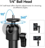 - 4-Section Telescopic Arm: Up to 70cm/27.56inch, the 4-section telescopic arm makes it perfect for finding the angle and position you desired, and 1/4″ ball head offers flexible adjustments for shooting at different angles