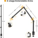 - 【Excellent Stability】1KG Load-bearing in the horizontal state. In addition to being able to connect to lightweight equipment such as microphones/ fill lights and webcam, it can also be used with small cameras.