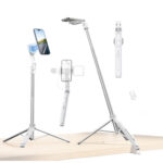 Magnetic Tripod for iPhone, 57″ Extendable Selfie Stick with Remote, 2-in-1 Phone Clip & Dual Cold Shoe Mounts-Lightweight Phone Tripod Stand for Vlogging, Travel, Video Recording (White)