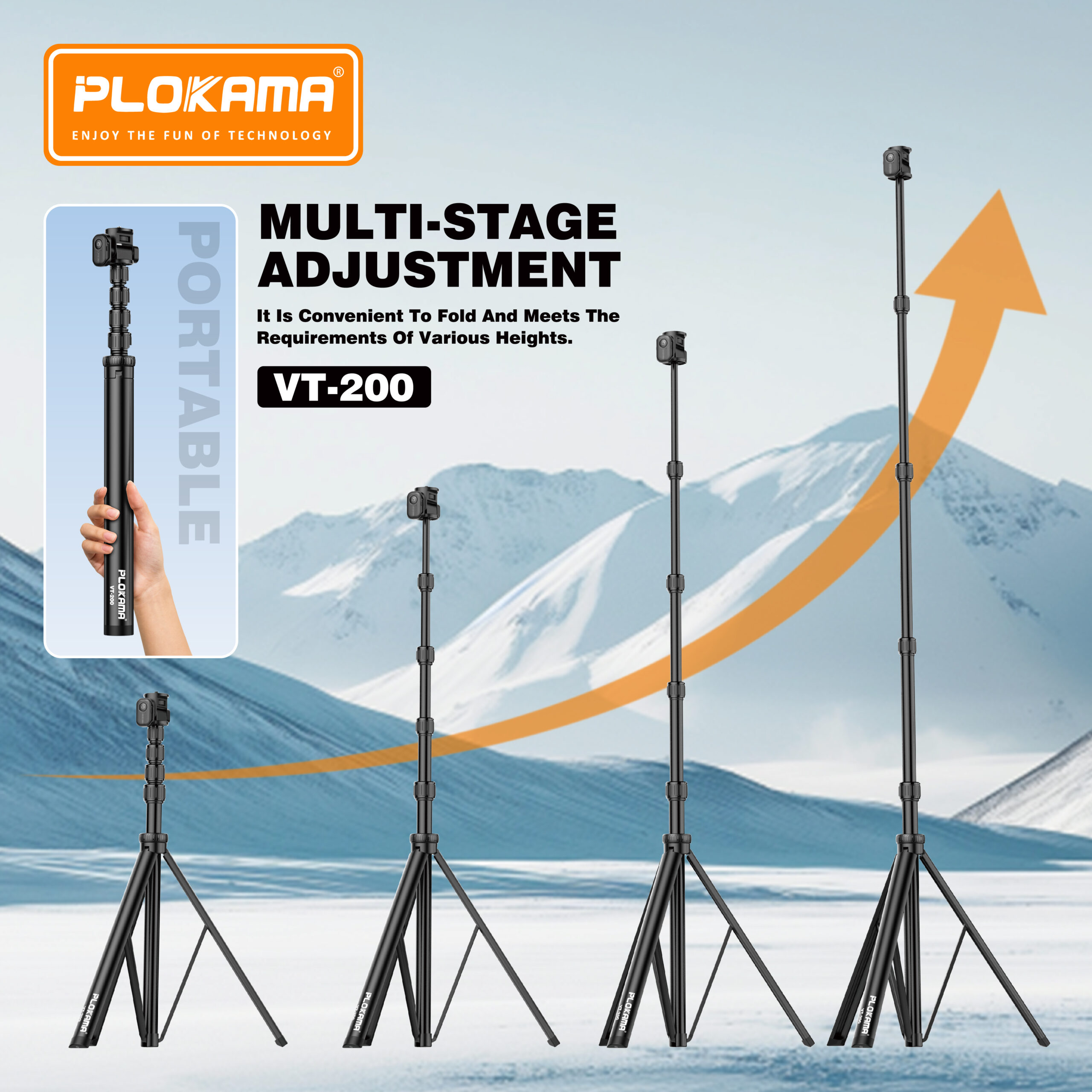 قصى ارتفاع: ٢٠٠ سم – مثالي للتصوير الفوتوغرافي والفيديو من زوايا مرتفعة