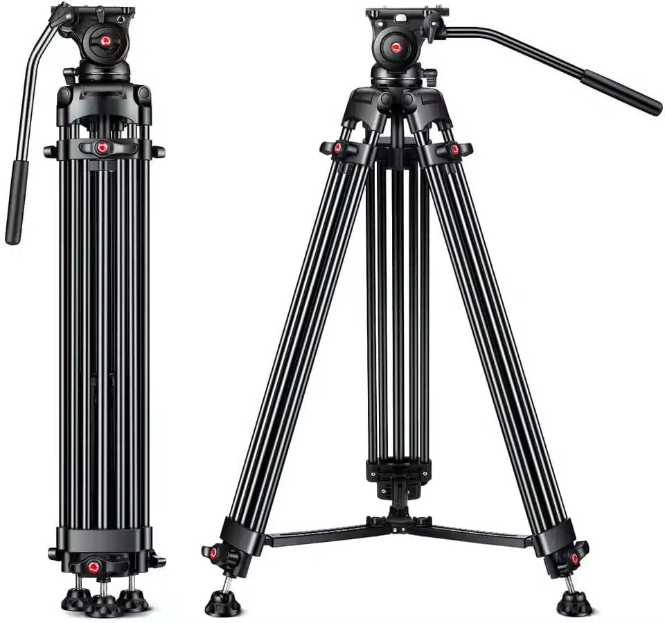 - صُمم هذا الحامل من سبائك الألومنيوم المتينة ونظام أرجل ثلاثي المراحل، مما يوفر دعمًا موثوقًا لمعدات الكاميرا الخاصة بك