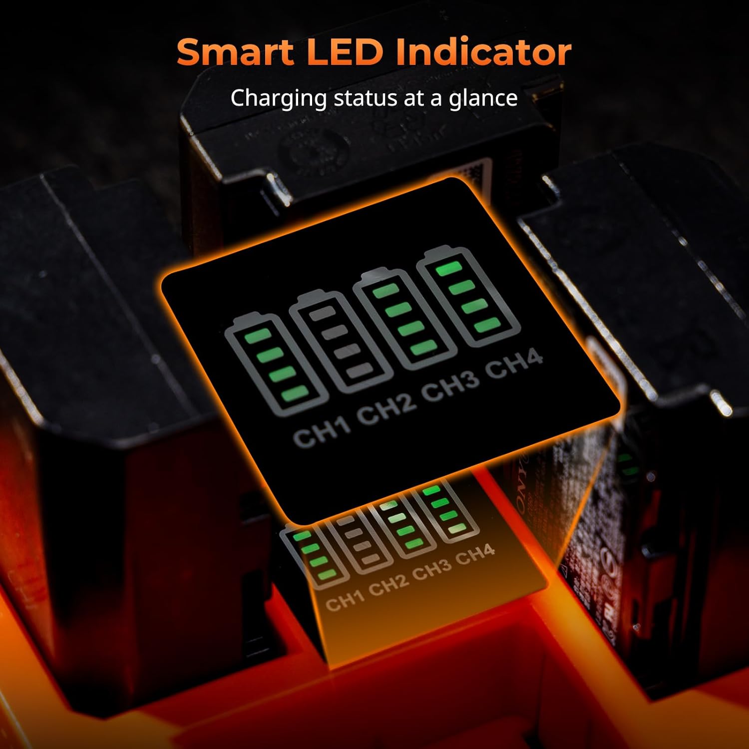 شاشة LED ذكية: ابقَ على اطلاع دائم من خلال مؤشرات LED سهلة الاستخدام لكل منفذ. يوفر شاحن بطاريات NP-FZ100 من سوني رؤية فورية لتقدم عملية الشحن، لتكون على دراية تامة بموعد جاهزية كل بطارية – لا مجال للتخمين، فقط إدارة فعّالة للطاقة.