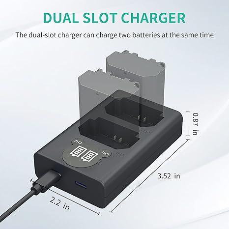 شحن سريعشاحن بطاريات مزدوج EN-EL15/EL15a/EL15b/EL15cمتوافقة تماماً مع كاميرات Z6، Z6 II، Z7، Z7 II، D500، 600، D610، D750، D780، D800، D800E، D810، D810A، D850، D7000، D7100، D7200، D7500