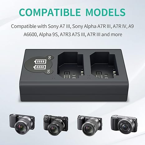 متوافق مع كاميرات سوني A6600، A9، A9R، A9S، A9II، A7C، A7SIII، A7III، A7RIII، A7RIV، A7IV،A7V ومحطة شحن سوني NP-FZ100.