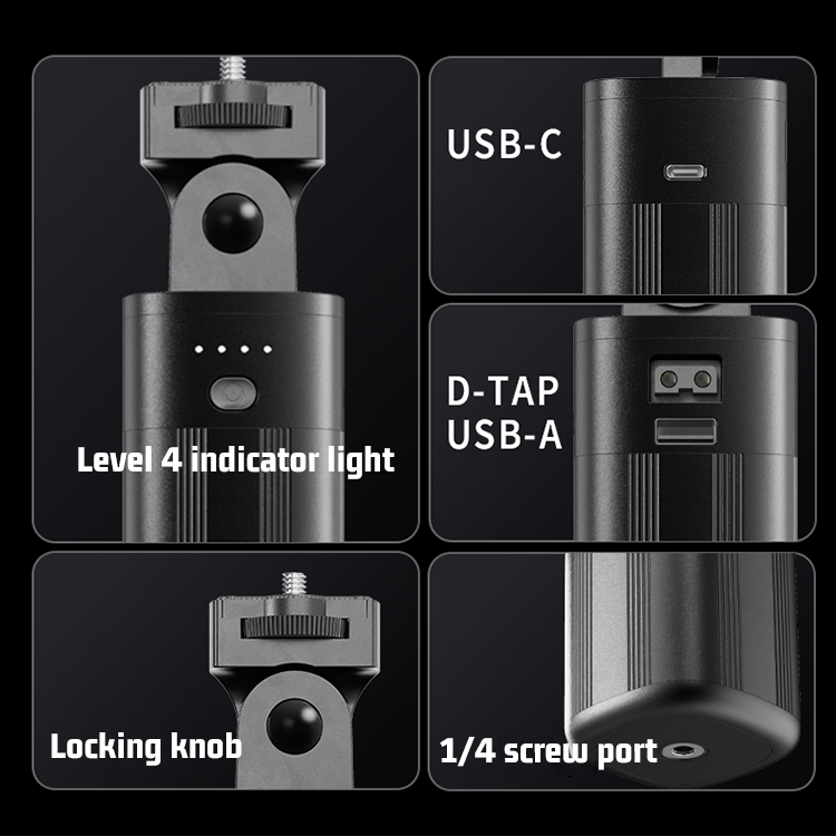 - بطارية مدمجة عالية السعة 3400 مللي أمبير في الساعة يدعم مصباح الفيديو 40 واط Pro RGB COB ثلاثة مصادر طاقة: محول طاقة تيار مستمر أو طاقة من النوع C أو بطاريته المدمجة. تتيح بطاريته عالية السعة ما يصل إلى 3 ساعات من الاستخدام عند الحد الأدنى من السطوع وما يصل إلى 50 دقيقة عند الحد الأقصى للسطوع.