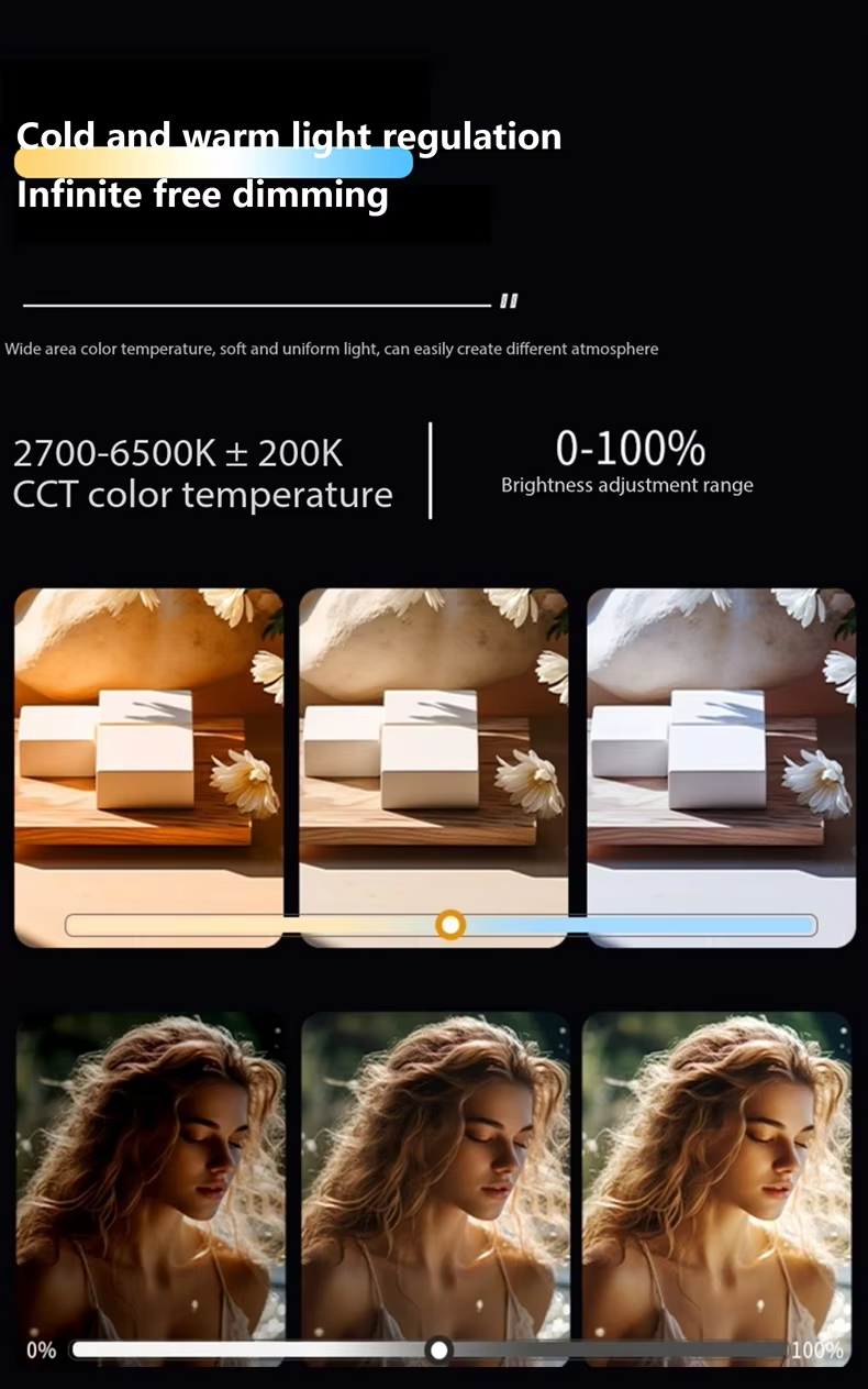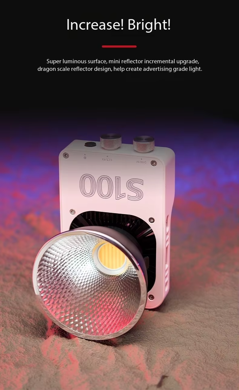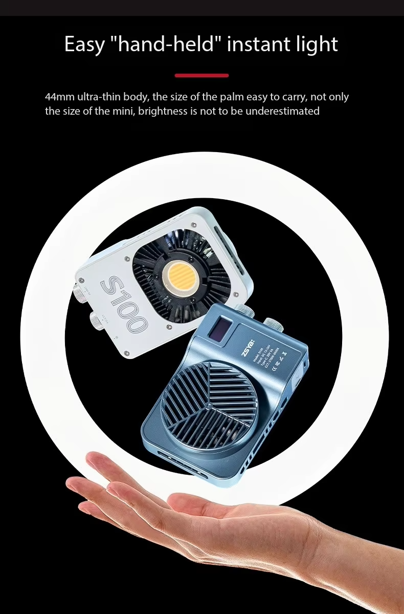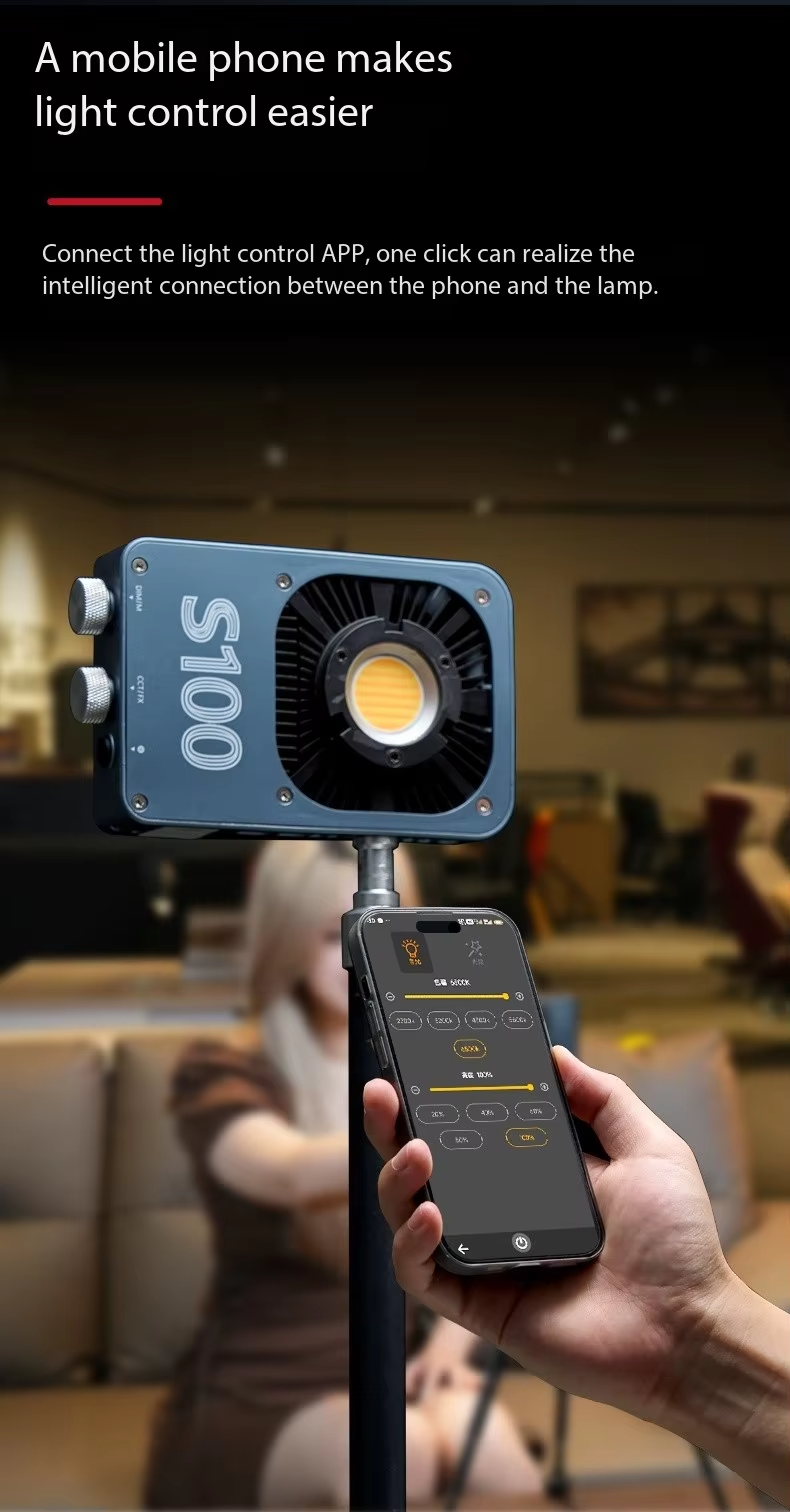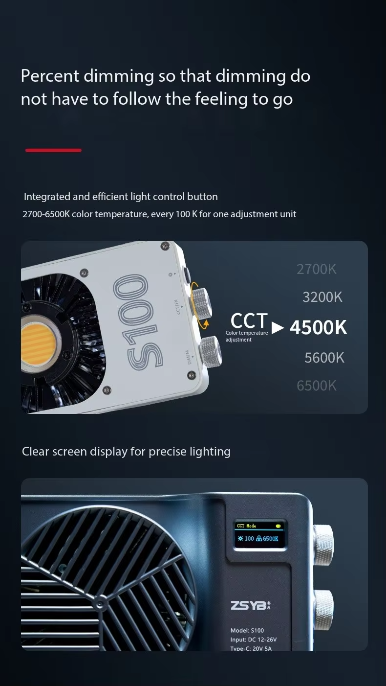 - Continuous lighting for photography: brightness adjustment range 20-100%, lighting angle 120°, the built-in quiet fan offers creators a very quiet environment for video productions.