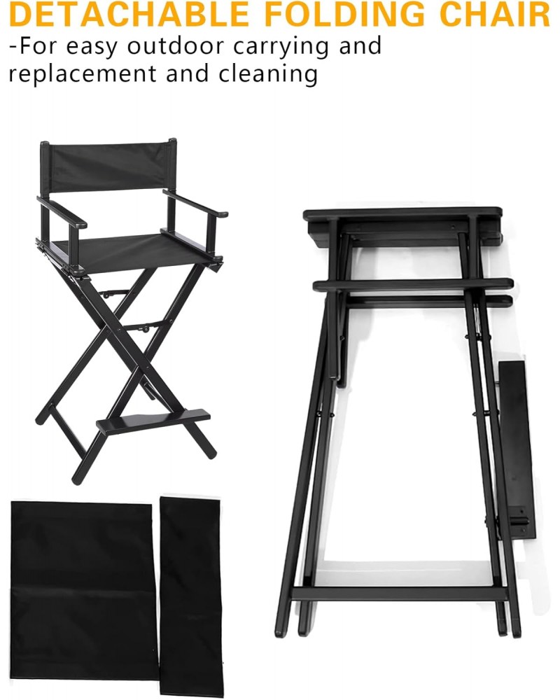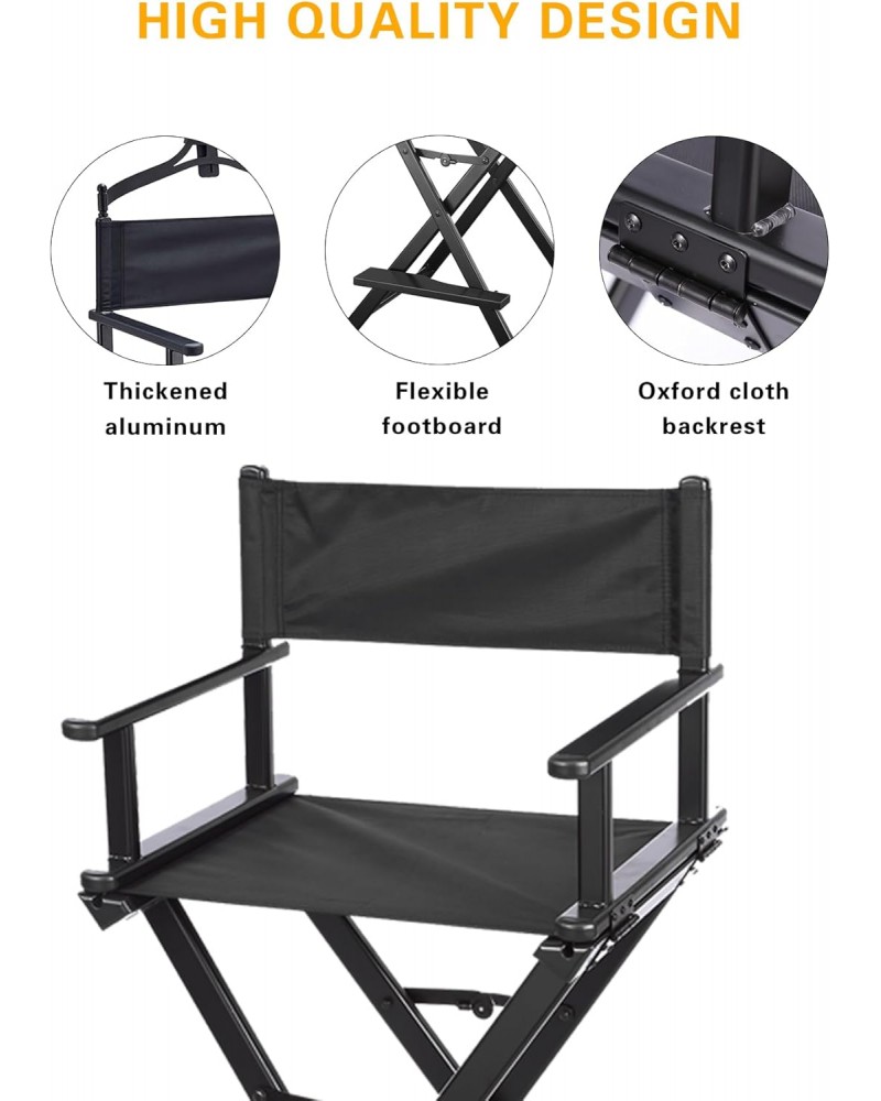 بفضل هيكلها المتين والثابت الذي يتحمل وزنًا يصل إلى 120 كيلوغرامًا، يضمن كرسي المخرج لدينا تجربة جلوس أكثر ثباتًا وأمانًا. كما تعزز مساند الذراعين والقدمين المدمجة الراحة، مما يجعله مثاليًا للاستخدام لفترات طويلة. سهولة النقل: صُمم كرسي فنان المكياج هذا خصيصًا للمحترفين كثيري التنقل، حيث يتيح تصميمه القابل للطي وخفة وزنه سهولة نقله. يتميز الكرسي بإمكانية تعديل ارتفاعه، بالإضافة إلى مسند رأس قابل للفصل لسهولة وسرعة التركيب والفك. خامة متينة وجيدة التهوية: يتميز كرسي فنان المكياج بمقعد ومسند ظهر مصنوعين من قماش عالي الجودة، يتميز بتهوية جيدة لراحة المستخدم ومتانة تدوم طويلًا في بيئة عمل احترافية. مساعد متعدد الاستخدامات: يُعد هذا الكرسي مثاليًا لفناني المكياج والمخرجين والممثلين، أو أي محترف في مجال الترفيه، حيث يوفر منصة متينة ومريحة لكل من الفنان والعارضة. قابل للتكيف مع مختلف البيئات: سواء في الداخل أو الخارج أو أثناء البث المباشر أو جلسات التصوير في الاستوديو أو مع حقيبة أدوات التجميل، فإن الارتفاع المناسب لهذا الكرسي وبنيته القوية تلبي أي سيناريو يتطلب لمسة احترافية.