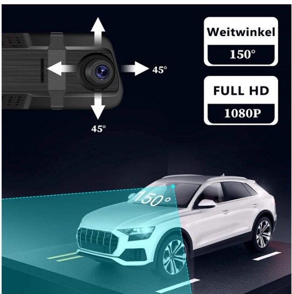 – يحتوي جهاز تسجيل الفيديو الرقمي للسيارة على كاميرتين تسمحان بتسجيل مقاطع فيديو متزامنة من زاويتين مختلفتين.