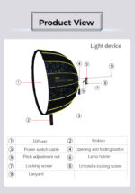 - Colour temperature in the range of 2500-9000K, 20 types of light effects, portable compact structure in the bag