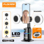 المنتج حامل هاتف ذكي لتتبع الوجه تلقائيًا بزاوية 360 درجة مع إضاءة led ملء gimbal لا يتطلب تطبيق حامل متنقل للبث المباشر وtiktok live ومقاطع فيديو youtube وتسجيل الفيديو والاجتماعات عبر الإنترنت وجهاز التحكم عن بعد