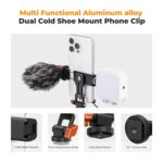[تصميم مزدوج بفتحات تثبيت ملحقات إضافية] يأتي حامل الهاتف ثلاثي القوائم مزودًا بفتحتين لتثبيت الملحقات الإضافية، مثل الميكروفونات ووحدات الإضاءة وغيرها. كما يمكن تدوير هاتين الفتحتين لضبط زاوية الملحقات.