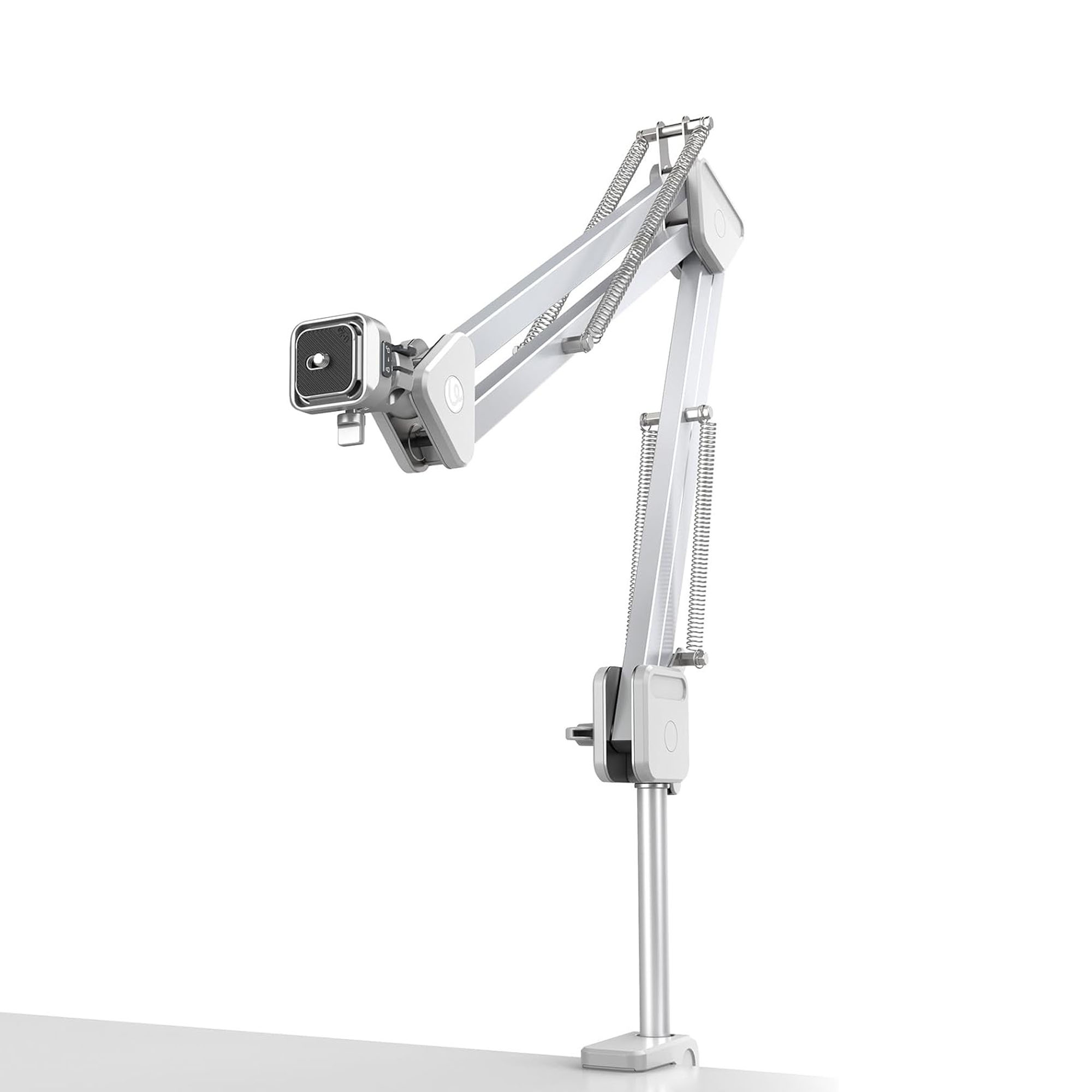 حامل مكتبي ثابت وقابل للتعديل للكاميرا يتميز هذا الحامل المكتبي للكاميرا بمقبض زنبركي وأذرع من سبائك الألومنيوم، مما يتيح لك تثبيت جهازك بدقة وسهولة. ثبّت جهازك في أي زاوية أو ارتفاع بلفة بسيطة – دون الحاجة إلى إعادة ضبط مستمرة.