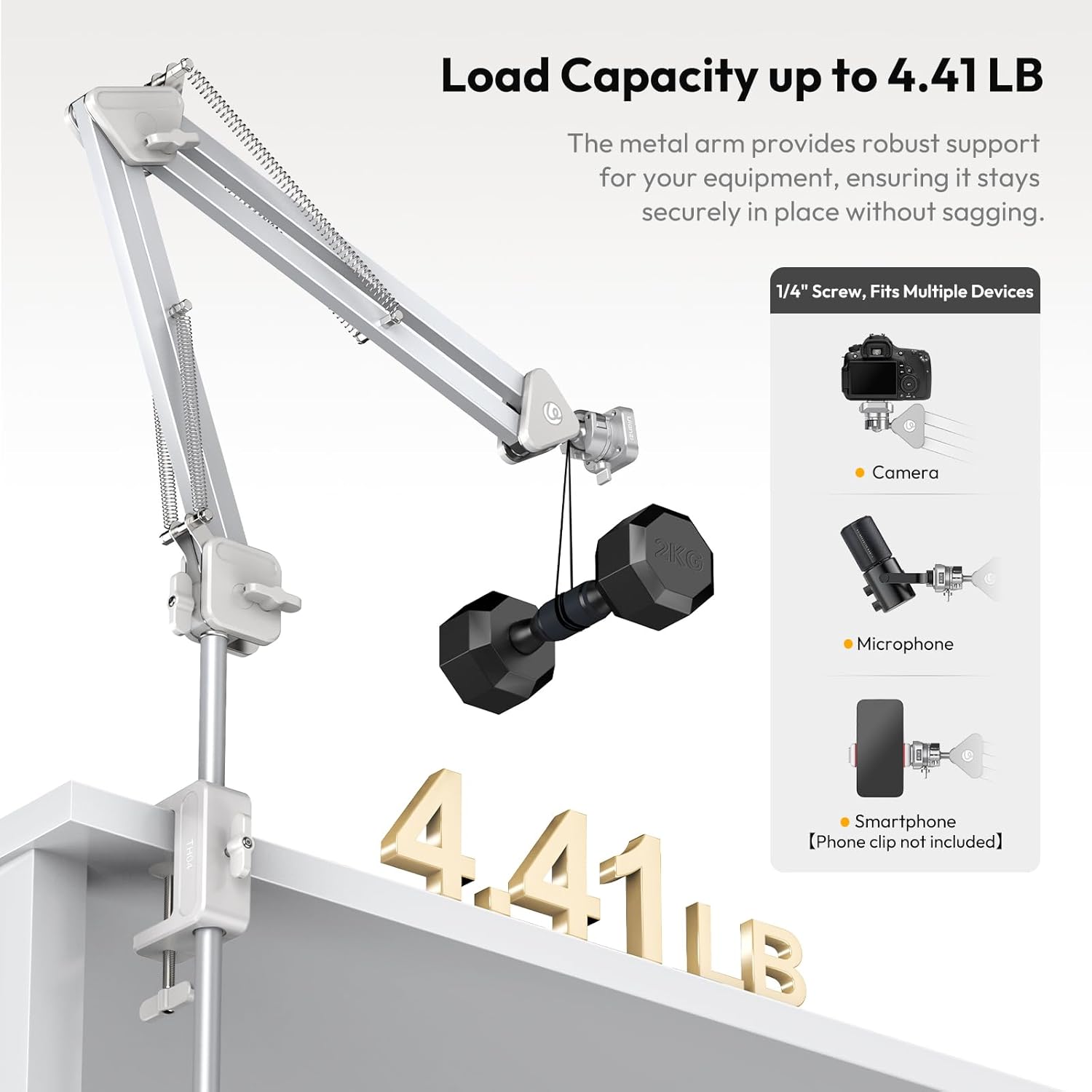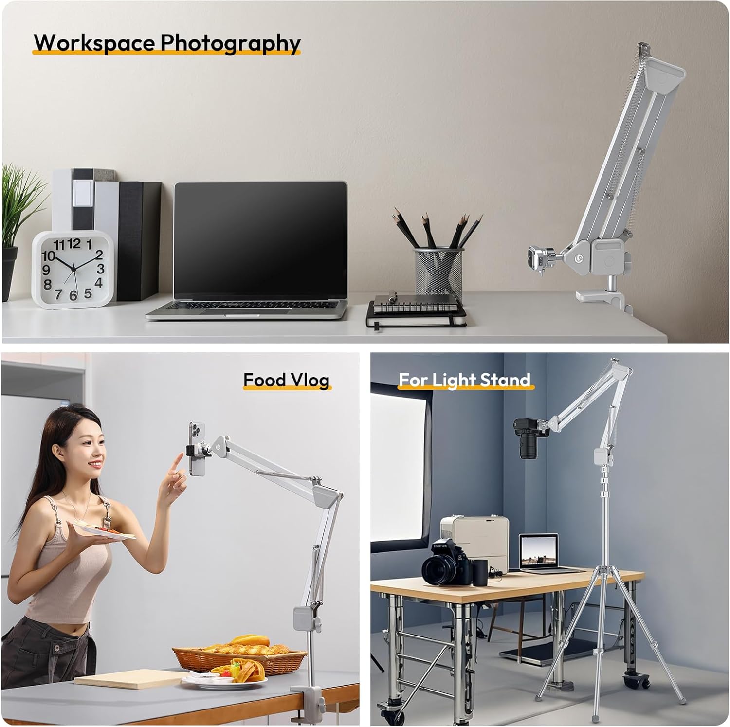حامل مكتبي قابل للتعديل من 17.3 إلى 41.3 بوصة، يوفر لك ارتفاعًا مناسبًا للتصوير والإضاءة من الأعلى. وذراع تثبيت إضافي