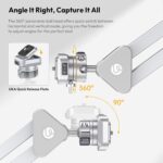 رأس كروي بانورامي 360 درجة (أقصى حمولة 2 كجم) يوفر الرأس الكروي دورانًا بزاوية 360 درجة بالإضافة إلى إمالة بزاوية 290 درجة، مع نظام Uka للتحرير السريع ومسمار 1/4 بوصة لتغيير الزوايا بسرعة – دون الحاجة إلى فك أي جزء. يمكنك التبديل بسهولة بين التصوير الأفقي والرأسي والعلوي.